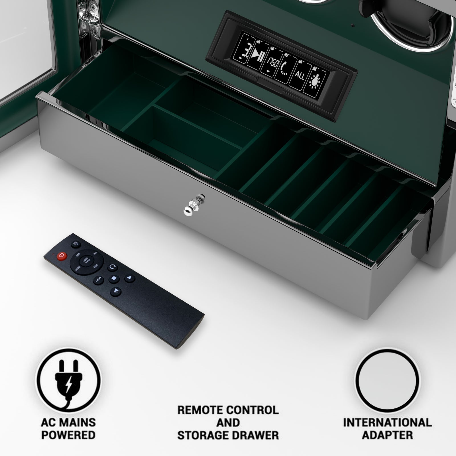 Der 2026 IQ Serie Uhrenbeweger kombiniert innovative Technologie mit praktischem Design. Mit neun Slots bietet er Platz für mehrere Uhren und nutzt patentierte intelligente Bewegungsmechanismen, um automatische Aufzuguhren optimal zu warten. Das LCD Touch Display ermöglicht einfache Bedienung und Anpassung der Rotationseinstellungen. Die Tastensperre schützt vor unbeabsichtigten Änderungen, während die zusätzliche Schmuckablage und die ausziehbare Schublade für Stauraum sorgen. Das elegante grüne Finish macht ihn zum attraktiven Möbelstück. Ideal für Uhrensammler, die Wert auf Qualität und Funktionalität legen.